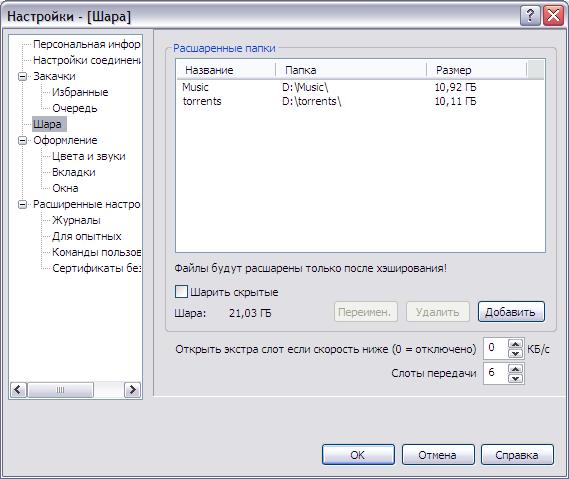 | Немного разобрался, поэтому расскажу. Хаб в децентрализованной пиринговой файлообменной системе Direct Connect (DC)- это сервер сети, иначе, это точка соединения пользователей где они могут использовать чат и искать друг у друга файлы. Для подключения к хабу нужен клиент, который необходим для поиска файлов и источников для их скачивания. Имеются различные DC-клиенты. Здесь есть их список: http://ru.wikipedia.org/wiki/Direct_Connect Я поставил DC++ - "отца" всех DC-клиентов. Сайт программы: http://dcplusplus.sourceforge.net/. Кроме того, он более всего подходит для скачивания классики. Следующий сайт посвящен русскоязычному сообществу пользователей DC++: http://dc.hovel.ru/ Хаб classicalmusich ub.org посвящен классической музыке. Для того чтобы зарегистрироваться на нем необходимо предоставить минимум 30Gb классической музыки, причем образы (потреково или образ+cue) CD с музыкой с четкими правилами оформления. Обо всем этом изложено на следующей странице: http://www.doucement.org/hub.html В итоге будет создана папка "Classical". Далее её надо добавить в настройках DC++ для последующего расшаривания после хеширования. Это показано на скриншоте (для примера взяты 2 папки с общим размером 21 Gb; у меня больше музыки пока нет ) Затем там же в настройках пишем свой ник, добавив перед ним сочетание [GUEST]; последнее необходимо для возможности зайти на хаб как гость. Также необходимо установить количество слотов равным минимум 2 (по умолчанию оно равно 1). Это можно сделать внизу у основания окна программы, как видно на скриншоте. После ввода адреса хаба classicalmusich ub.org в окно "Быстрое соединение..." должно произойти соединение с ним. Через некоторое время с вами свяжется оператор и посмотрит как оформлены файлы и т.д. Если ему все понравится, то он вас зарегистрирует и вы сможете скачивать музыку от других пользователей.