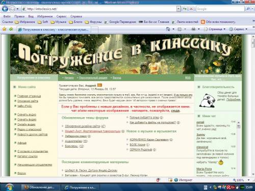 | Сильно урезать изображения - жалко. Несильно - поможет несильно. Урезал пока до 420x300, подействует только на новые материалы. И дополнил правила добавления материалов. Quote (kubra) А новости, кому надо, тот может сам вниз отмотать. Дело в том, что браузер загружает все изображения, связанные с новостями, вне зависимости от того, смотрит их посетитель или нет. Они нагружают страницу, и браузер может поэтому отказаться от дополнительной нагрузки в виде мини-чата. В общем, пока пособираем информацию - у многих ли глючит.